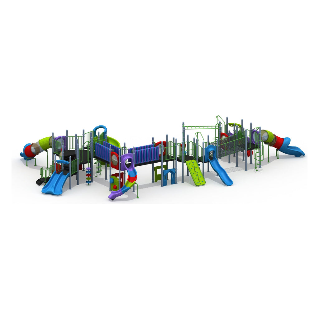 Step into a world of boundless fun with our Kaleidoscope Kingdom—a vibrant, multi-level playground designed to keep children excited and engaged for hours. Bold hues of blue, green, red, and purple add a splash of energy to every inch of this large-scale structure, inviting kids to climb, crawl, and explore. Multiple slides—both open and enclosed—provide exhilarating descents, while sturdy bridges and climbing walls challenge balance and motor skills. Overhead ladders and monkey bars help develop upper-body strength, and integrated tube tunnels inspire imaginative play as children journey from one section to the next. Built with commercial-grade materials and engineered for safety, this playground is ideal for schools, parks, and community spaces. With Kaleidoscope Kingdom, every child has a chance to discover new paths, new friends, and new ways to play.