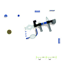 Transfer Station / Challenge Ladder / Upright Snake Climber / Twist Climber / Ships Wheel / Spiral Slide / Crawl Tunnel / Single Straight Slide / Rise Inter Steps / Rock Wall Climber