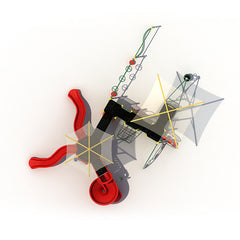 S Balance Bridge / Wheel Challenge Ladder / Guardrail W/ship's Wheel / Guardrail / Cylinder Spinner / Rise Inter Steps / Inclined Arch Bridge / Rock Climber / S-shape Sectional Slide / Net Climber / Pod Steps / Solar System Panel / Single Drum / Arch Puzzle Climber / Window Panel / Sectional Slide / Spiral Slide